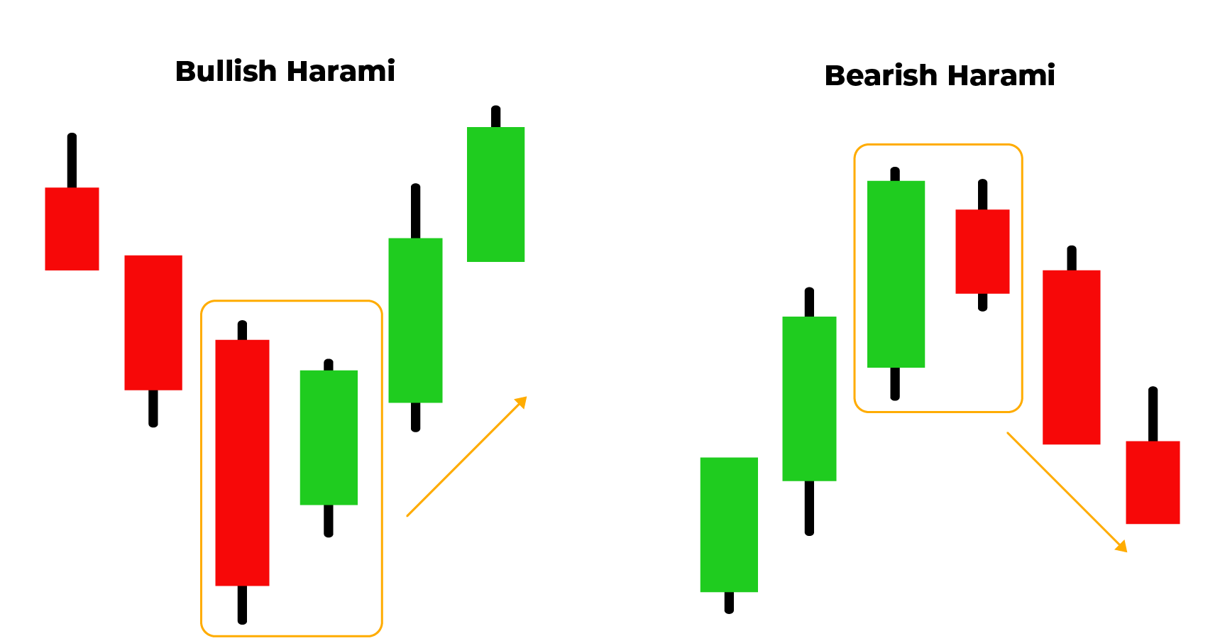 Harami adalah candle kecil yang “terbuka” di dalam body candle sebelumnya. Bullish harami bisa tanda pembalikan naik; bearish harami bisa tanda pembalikan turun.