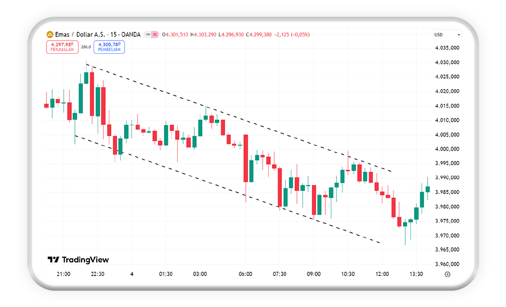 Jika high dan low terus turun, pasar sedang downtrend.