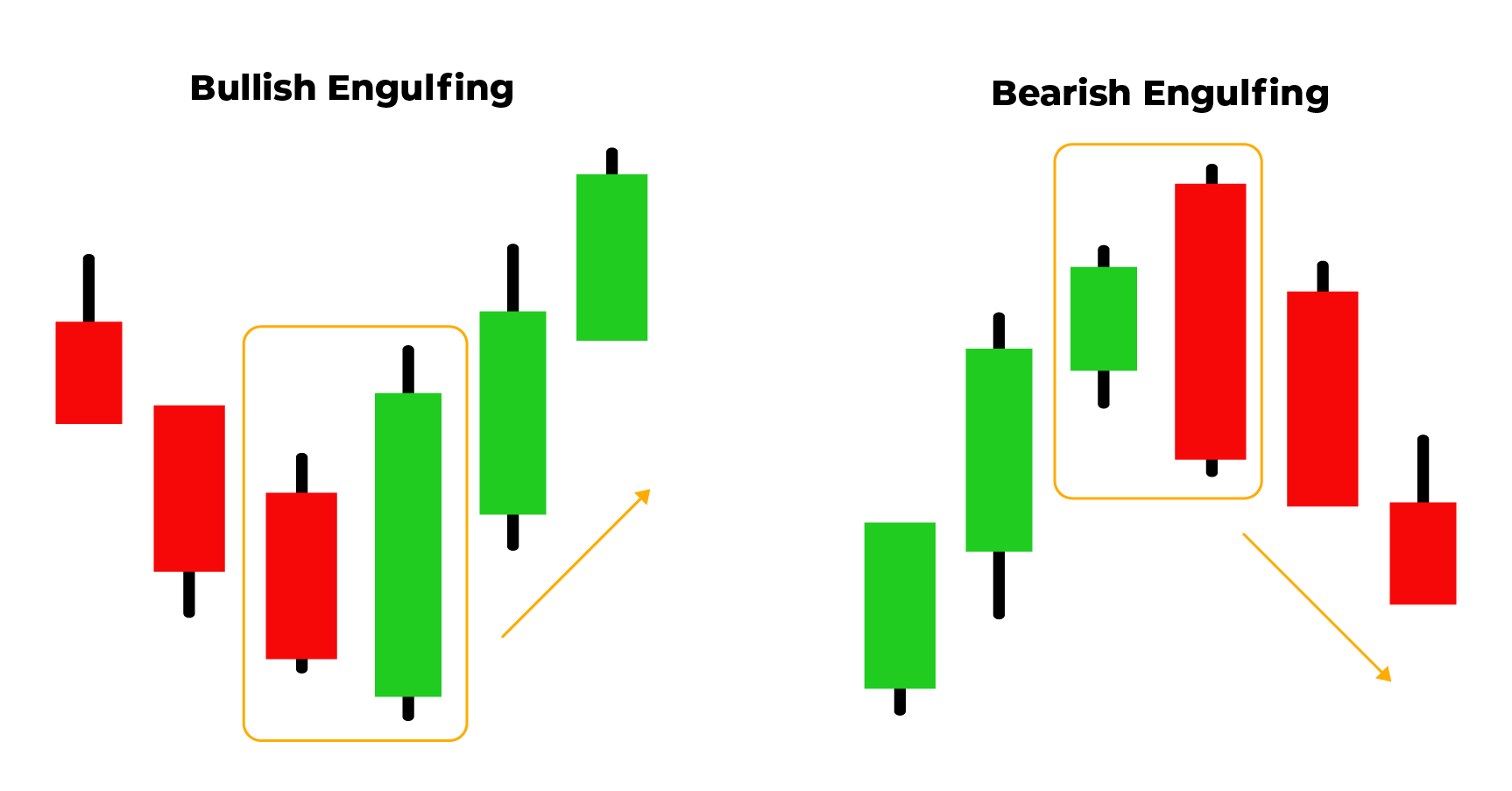 Bullish engulfing terjadi ketika sebuah candle bullish besar “menelan” candle bearish sebelumnya — sering muncul di akhir tren turun dan menandakan pembalikan naik. Bearish engulfing adalah kebalikannya: candle bearish besar menelan candle bullish sebelumnya dan biasanya muncul di puncak tren naik.