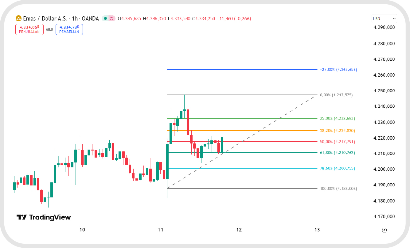 Garis ini membantu melihat arah harga dan memperkuat posisi retracement kamu.